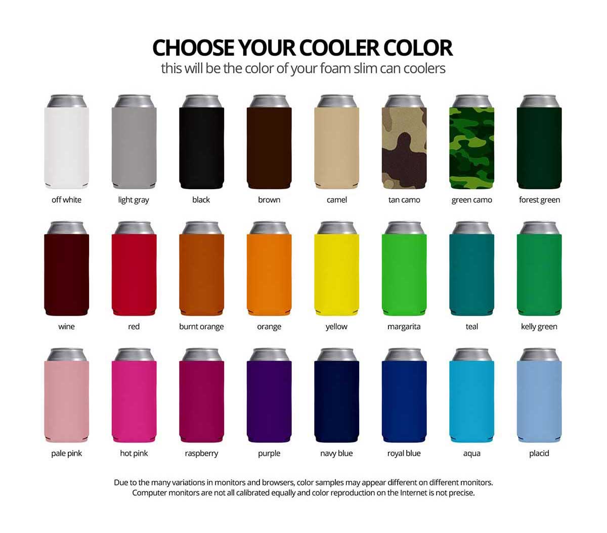 Prints may have a slight shadowing or imperfections due to the texture of the beverage insulators. Each koozie is inspected for quality before it is shipped out.